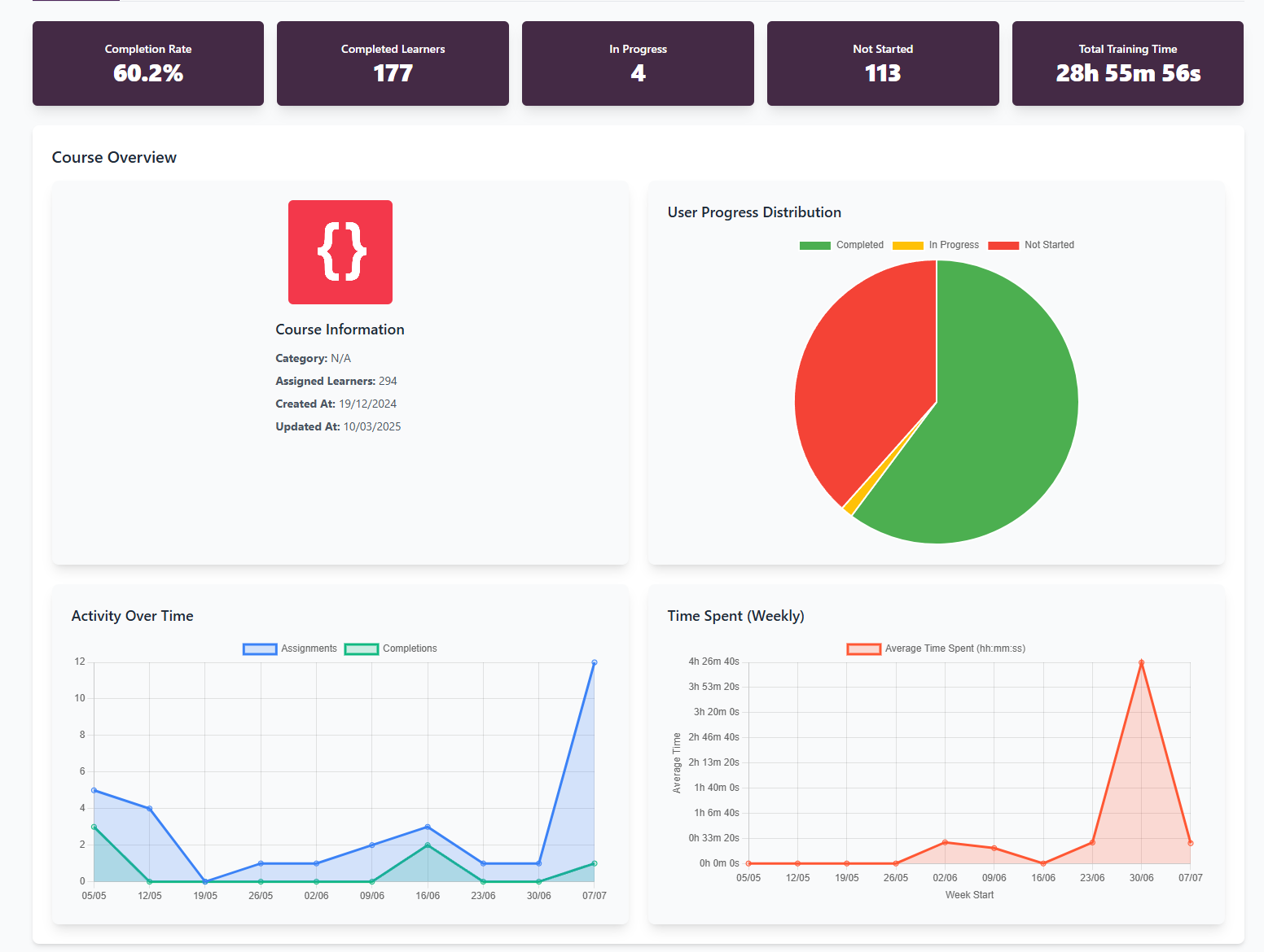 You can generate detailed reports instantly, showing completion rates, certificates, and proof of compliance for regulators or internal audits.