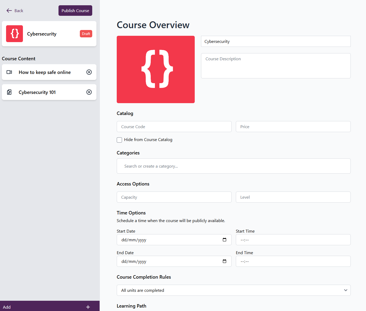 Set up tailored learning branches — from senior leadership to frontline teams.