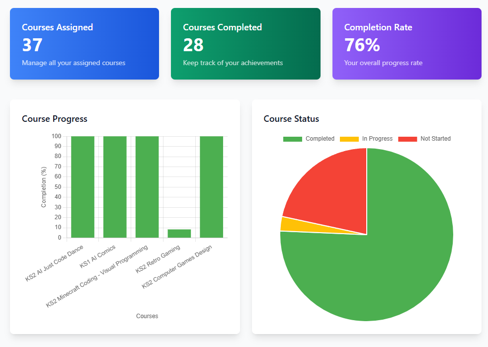 Our dashboards show you completion rates, overdue training, and certification statuses at both individual and team levels.